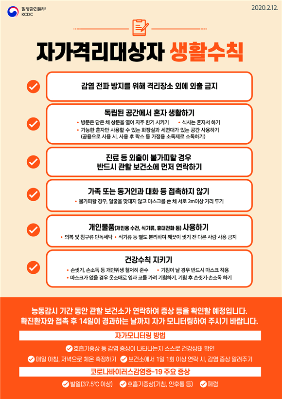 확진환자와 접촉 후 14일이 경과하는 날까지 자가 모니터링하여 주시기 바랍니다.