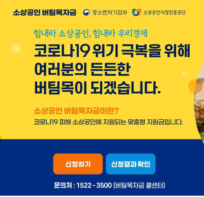 ▶ 소상공인 버팀목자금 최대 1000만원지급